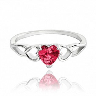 MINET Stříbrný prsten LOVE s červeným srdíčkovým zirkonem vel. 51