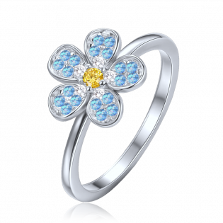 MINET Dětský stříbrný prsten kytička s modrým, bílým a žlutým zirkonem vel. 53
