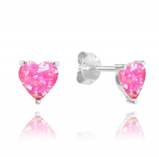 MINET Stříbrné náušnice SRDÍČKA s růžovými opálky