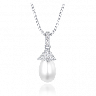 MINET Stříbrný náhrdelník s přírodními perlami a zirkonem