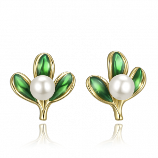 MINET Vánoční pozlacené stříbrné náušnice jmelí s perlami