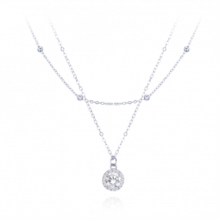MINET Dvojitý stříbrný náhrdelník s bílými zirkony