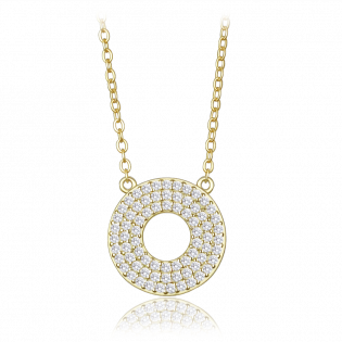 MINET Luxusní pozlacený stříbrný náhrdelník kroužek s bílými zirkony