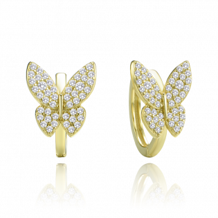 MINET Pozlacené stříbrné náušnice motýlci s bílými zirkony