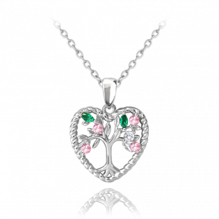 MINET Stříbrný náhrdelník STROM ŽIVOTA V SRDCI s barevnými zirkony
