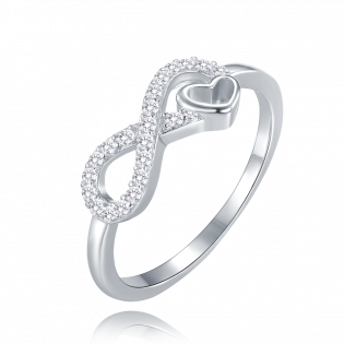 MINET Stříbrný prsten nekonečno se srdíčkem a bílými zirkony vel. 55