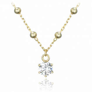 MINET Pozlacený stříbrný náhrdelník s kuličkami a bílým zirkonem