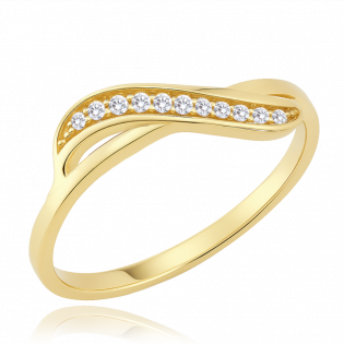 Moderní prsten z pravého 14karátového zlata s bílými zirkony. Prsten je vhodný pro každodenní nošení i zvláštní příležitosti. Kvalitního zpracování si všimnete hned po prvním nošení. Česká značka šperků a náramkových hodinek MINET vznikla v roce 2017 a na tvorbě doplňků se podílejí 3 sestry. Sbírají inspiraci doma i v zahraničí a přinášejí na trh stříbrné a zlaté šperky, které jsou jiné a dodávají osobitost jednoduchému outfitu i sebevědomí ženě, která je nosí.