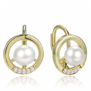 Pozlacené stříbrné náušnice MINET s perlou a zirkony jsou vyrobené ze stříbra Ag 925/1000, pokovené vrstvou zlata a chráněné e-coatingem. Patentové zapínání zajišťuje bezpečné nošení. Elegantní motiv kroužků působí sofistikovaně.