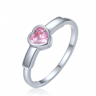 MINET Decentní stříbrný prsten srdce s růžovým zirkonem vel. 54