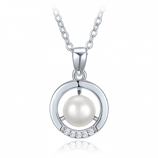 MINET Elegantní stříbrný náhrdelník kroužek s perlou a zirkonem