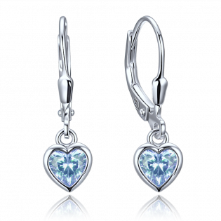 MINET Decentní stříbrné náušnice srdce se světle modrými zirkony