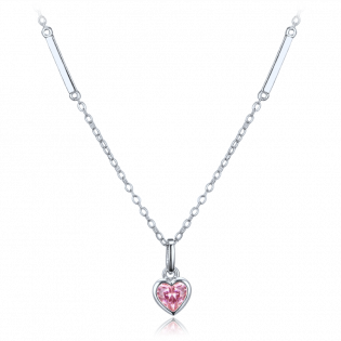 MINET Decentní stříbrný náhrdelník srdce s růžovým zirkonem