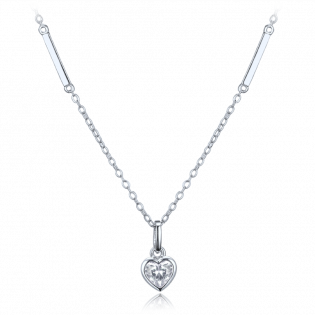 Stříbrný náhrdelník MINET se srdcem je vyroben ze stříbra Ag 925/1000 a má rhodiovaný povrch, který uchovává jeho barvu i lesk. Bílý zirkon dodává šperku jemný třpyt a decentní vzhled je ideální pro každodenní i slavnostní nošení.