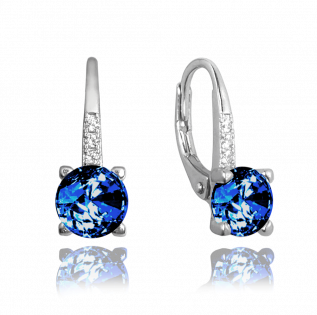 MINET Elegantní stříbrné náušnice s tmavě modrým zirkonem